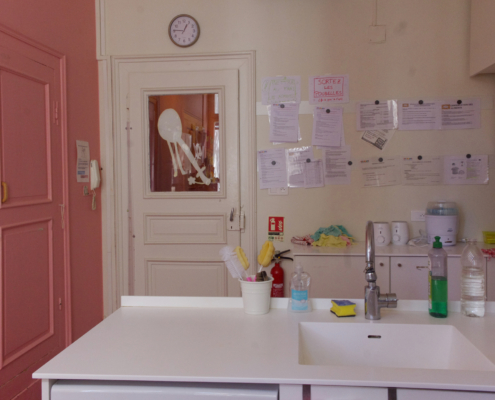 Une des auxiliaires petite enfance est également Cuisinière à mi-temps. Elle élabore tous les matins les repas à partir de produits frais, bio et de saison, selon un menu équilibré établi avec une famille (commission Menu). Après avoir rangé son tablier, notre cuisinière participe au moment du repas, puis prend son poste d’auxiliaire petite enfance. Attentive aux habitudes de chaque enfant en matière d’alimentation, de rythme, d’attrait, elle est à même d’inscrire la cuisine dans le projet pédagogique à travers l’éveil des sens, la découverte des fruits et des légumes, la participation à certaines préparations…